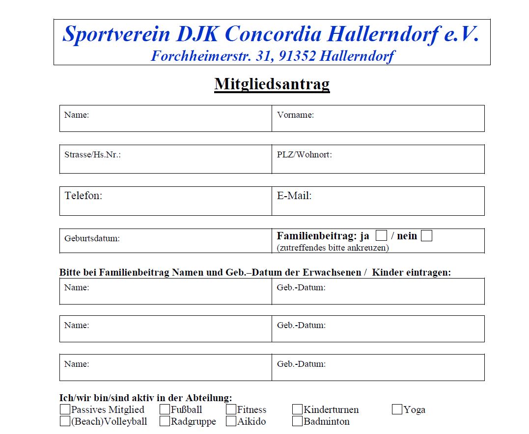 Werde auch Du Mitglied bei der DJK Hallerndorf und hole Dir gleich hier Deinen Mitgliedsantrag inkl. des SEPA-Lastschriftmandat.