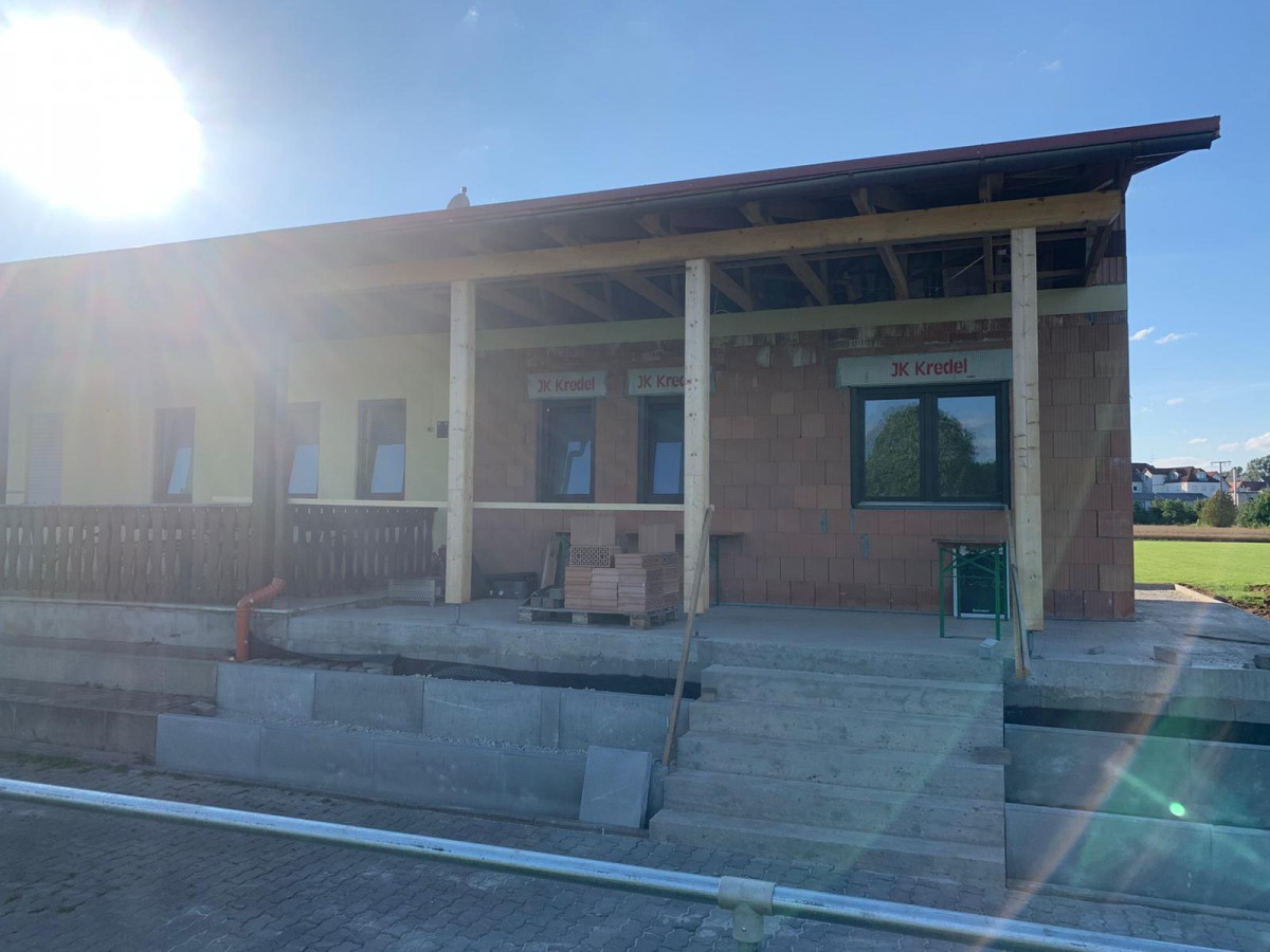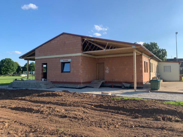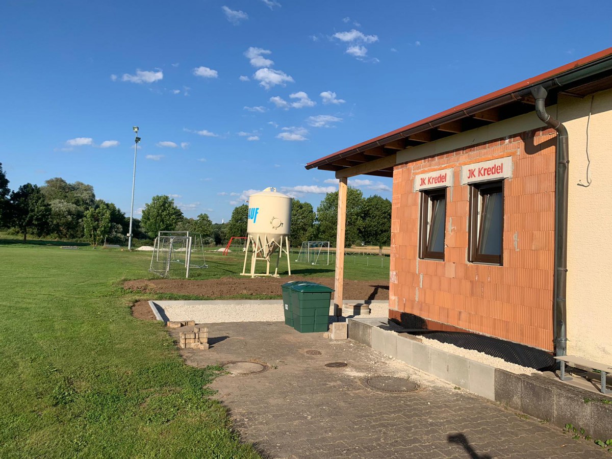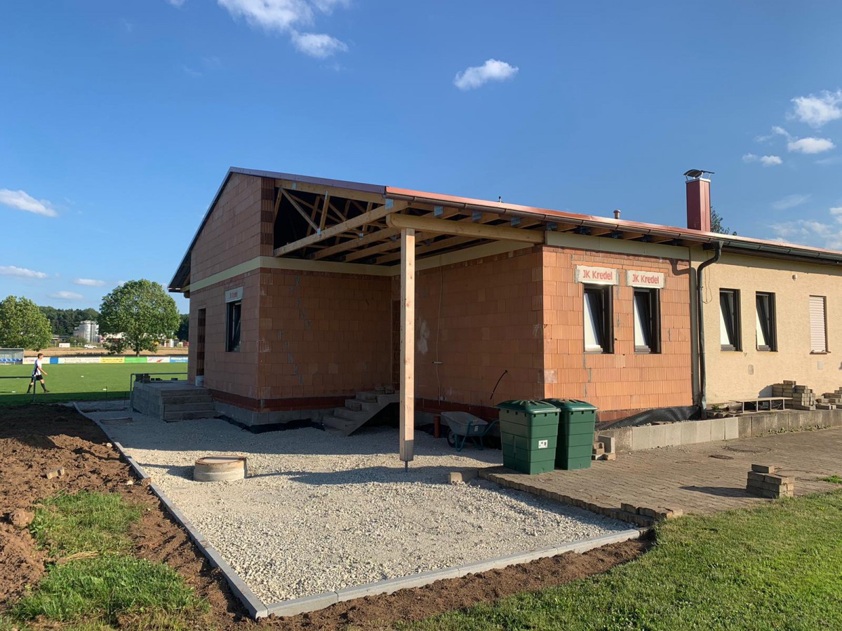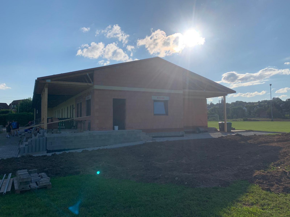 Seit nun 9 Monaten wird unser Sportheim erweitert und renoviert. Geplant sind 2 zusätzliche Kabinen, eine große Kabine für die Schiedsrichter, neue Duschen und eine integrierte Grillhütte mit Verkaufsfenster zur erweiterten Terrasse.