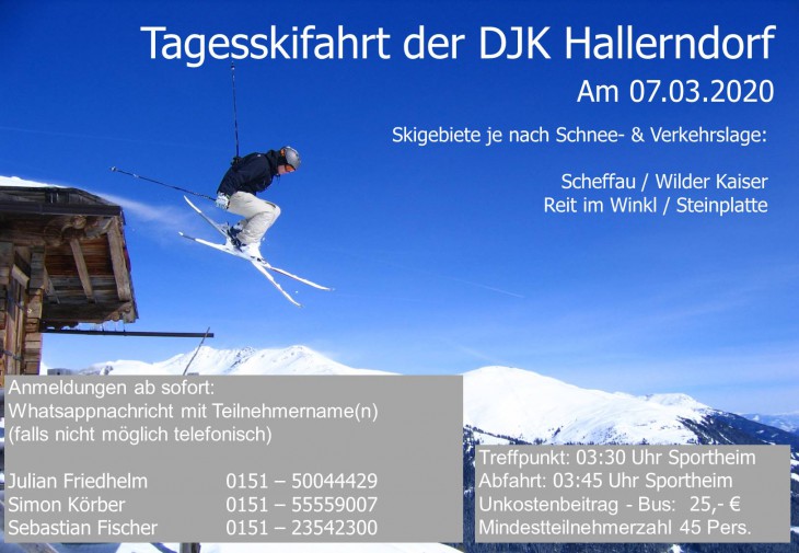 Abwechslung muss sein, deshalb geht es auch dieses Jahr wieder ab auf die Piste. Egal ob Ski oder Snowboard, gemütlich auf der Hütte oder die Piste runter brettern. Ihr seid alle herzlichst zu unserer DJK Tagesskifahrt eingeladen.